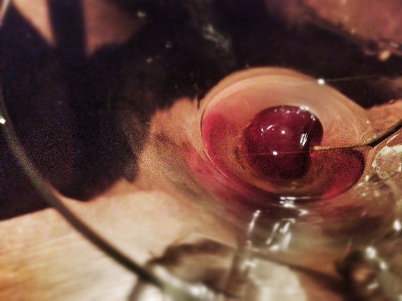 Remnants of the Japanese Lady Cocktail - Grand Marnier, framboise liqueur, gin, a cherry